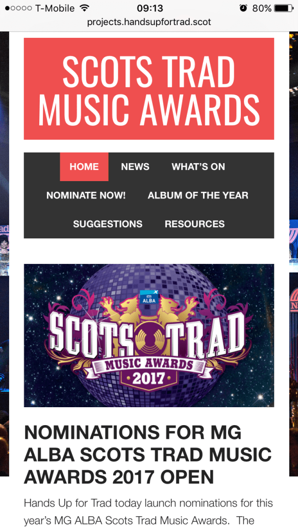 Categories you could nominate us for are Folk Band of the year, Instrunentalist of the year, Composer of the year, Best live act, and Scots singer of the year!!